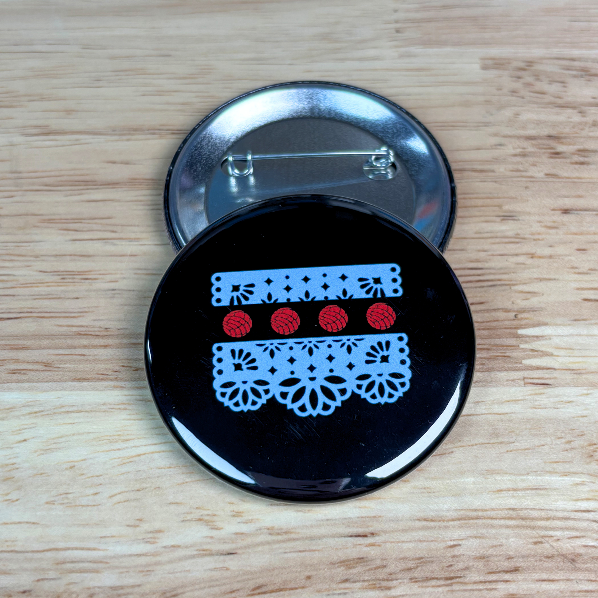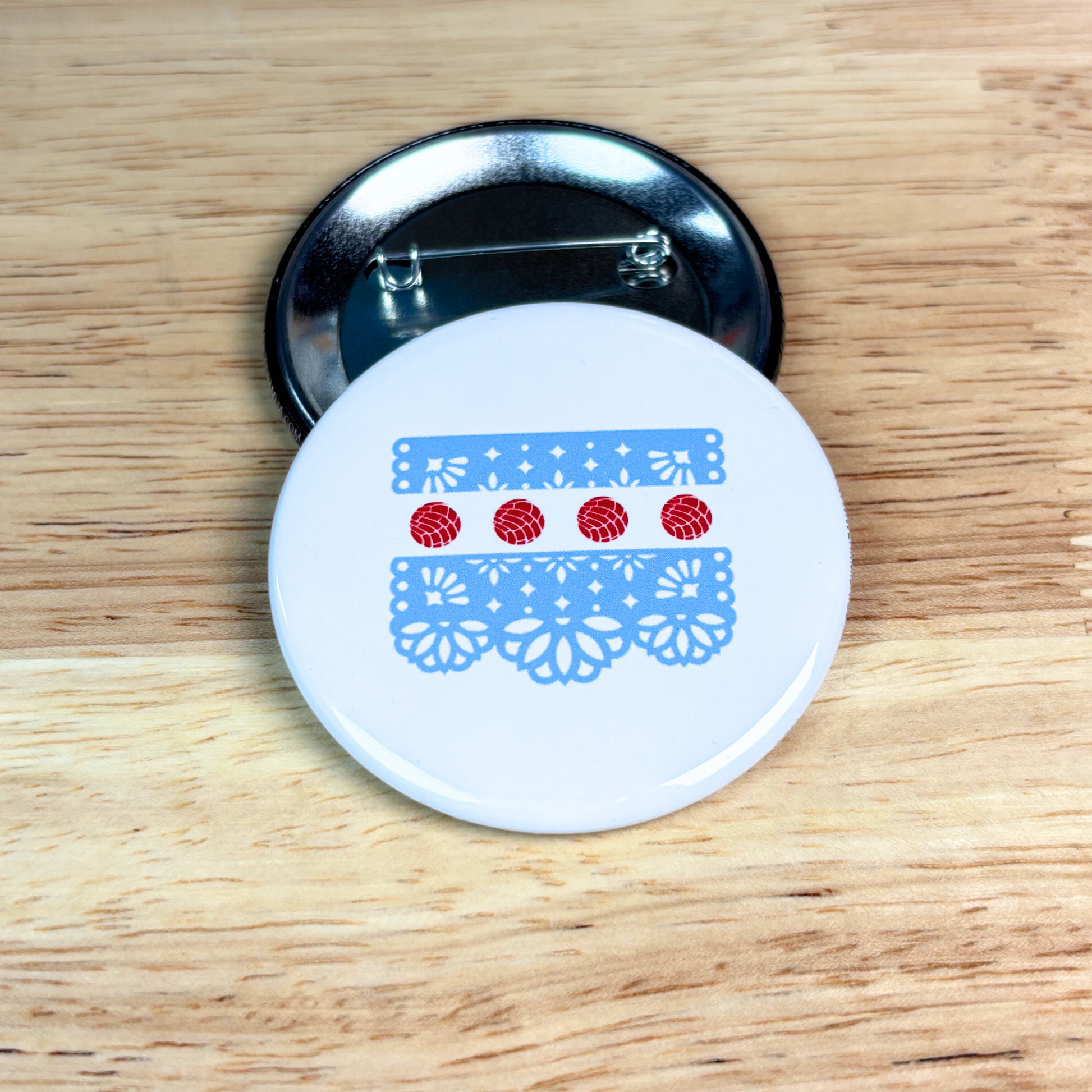 Showcase your orgullo anywhere with our Somos Chicago Button. Featuring the iconic Chicago flag reimagined in blue papel picado with concha stars, this design celebrates cultura and comunidad in the heart of the city.
